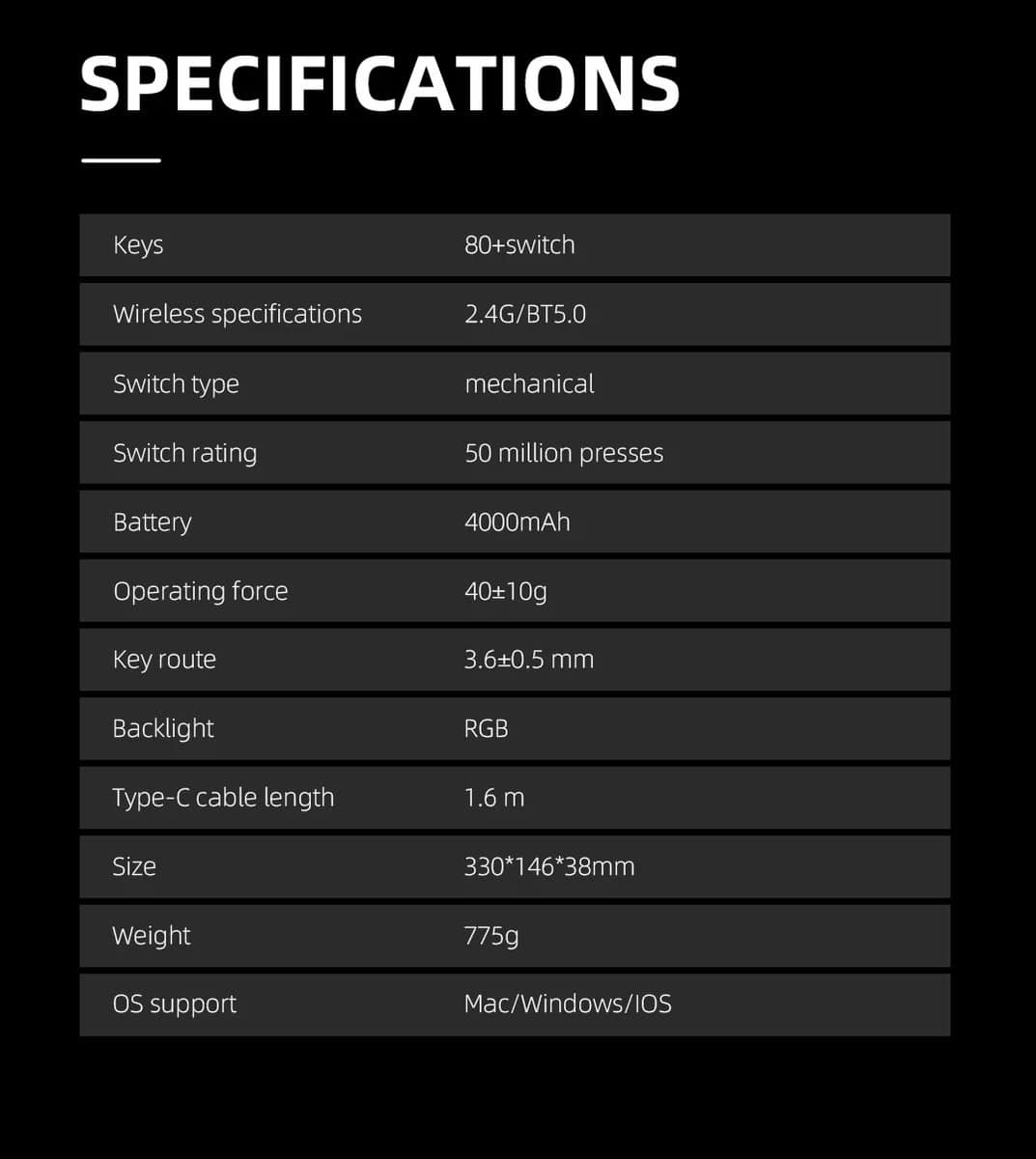 Teclado mecánico formato 76% con triple modo de conexión (Bluetooth, inalámbrico 2.4 GHz y USB-C cableado), interruptores Red y retroiluminación RGB. Ofrece una distribución completa en un diseño compacto y elegante color blanco.